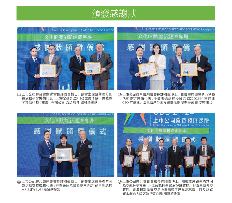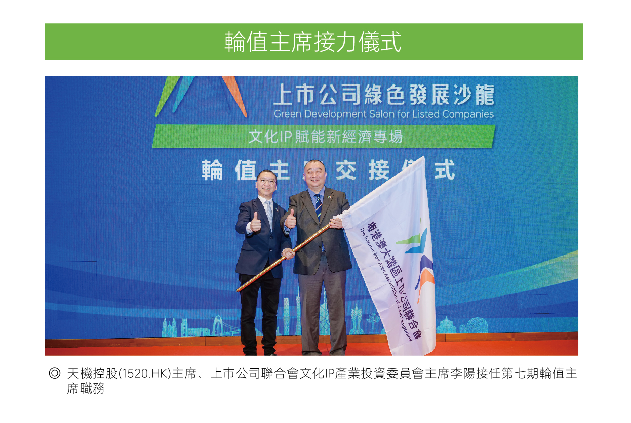 4月25日,由粵港澳大灣區上市公司聯合會主辦的第七期上市公司綠色發展沙龍在香港旺角希爾頓花園酒店成功舉辦。本次活動邀請到經濟學家、人工智能科學家、金融專家以及文化IP界別多位重量級嘉賓共同探索“文化IP賦能新經濟”的高質量發展商機,吸引上市公司、國際投融資機構、財經媒體、知名專家學者等近200位代表出席。