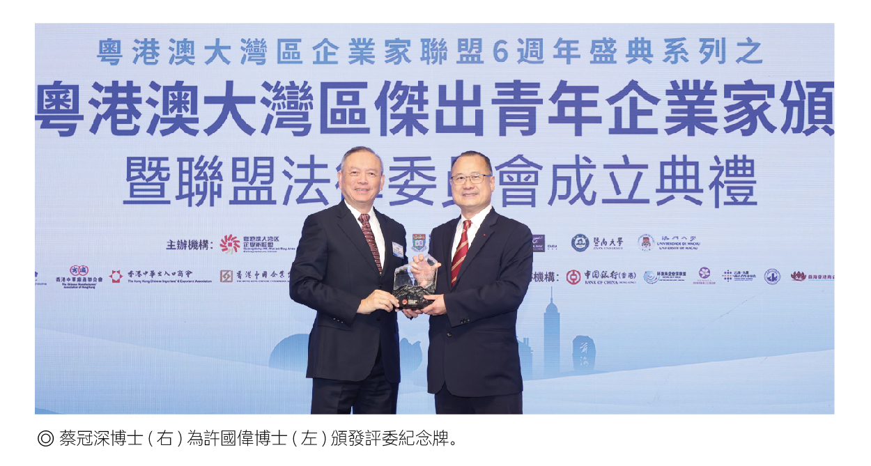 許國偉博士受邀出席第四屆「粵港澳大灣區傑出青年企業家評選」頒獎典禮並擔任主禮頒獎嘉賓