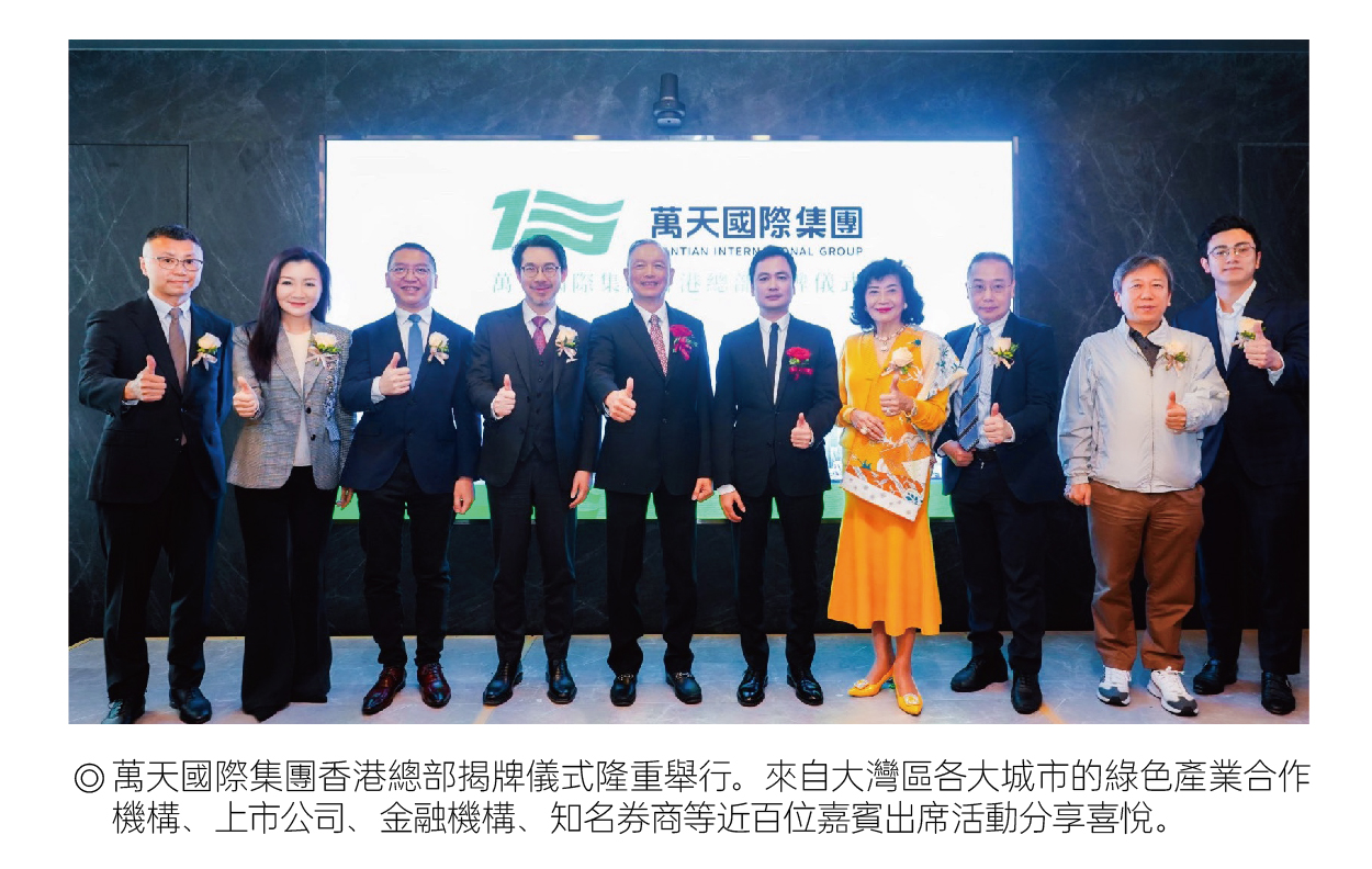萬天國際集團香港總部揭牌儀式隆重舉行。來自大灣區各大城市的綠色產業合作機構、上市公司、金融機構、知名券商等近百位嘉賓出席活動分享喜悦。