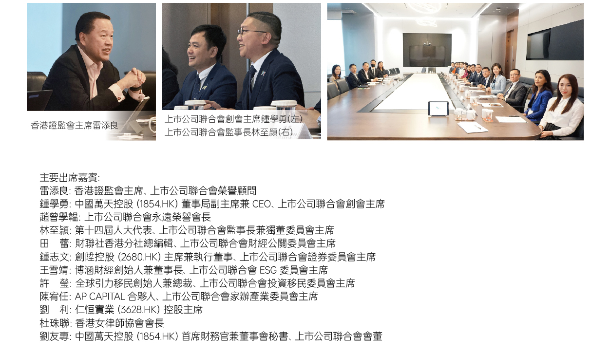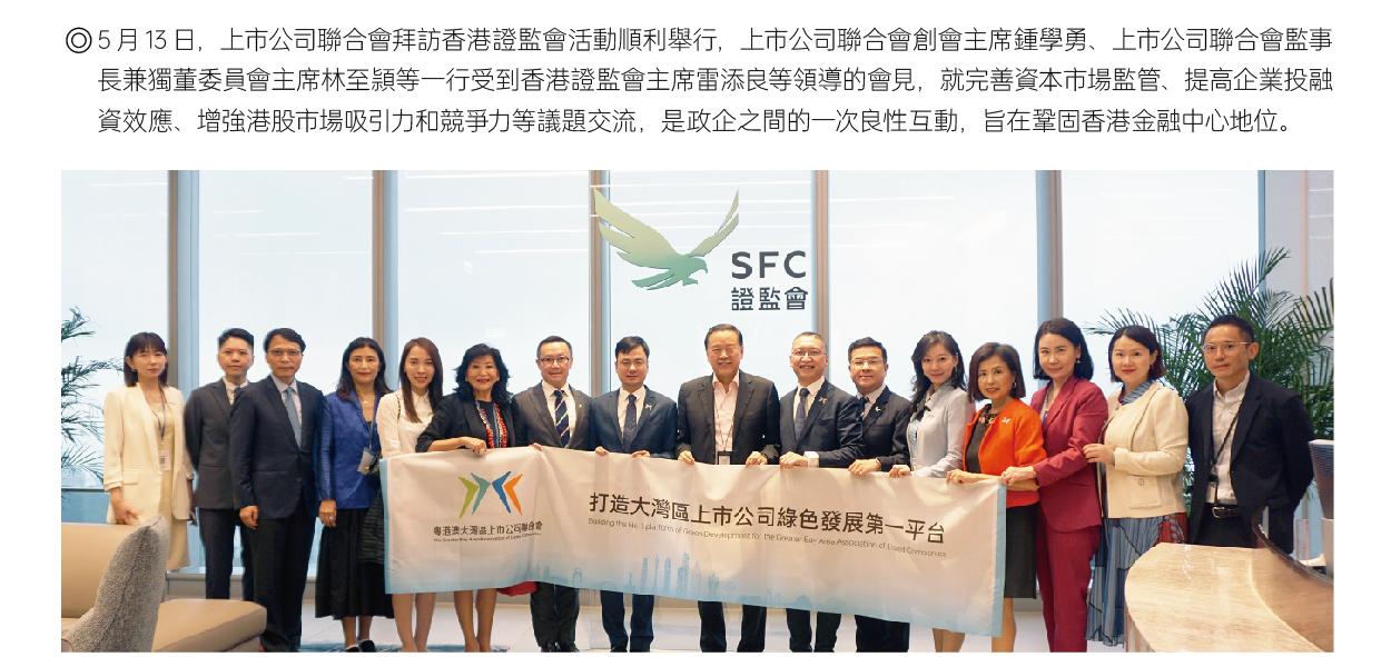 5月13日,上市公司聯合會拜訪香港證監會活動順利舉行,上市公司聯合會創會主席鐘學勇、上市公司聯合會監事長兼獨董委員會主席林至穎等一行受到香港證監會主席雷添良等領導的會見,就完善資本市場監管、提高企業投融資效應、增強港股市場吸引力和競爭力等議題交流,是政企之間的一次良性互動,旨在鞏固香港金融中心地位。