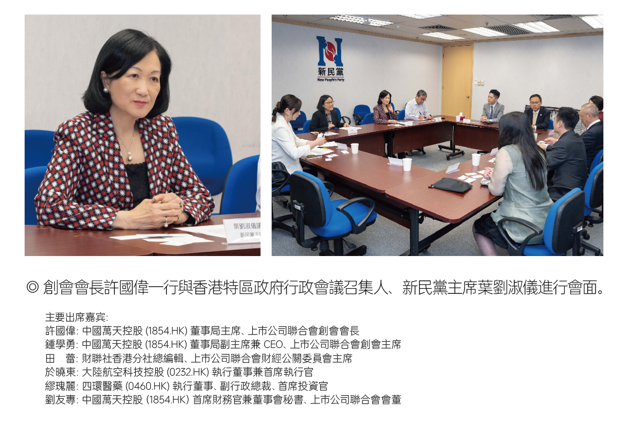 創會會長許國偉一行與香港特區政府行政會議召集人、新民黨主席葉劉淑儀進行會面。